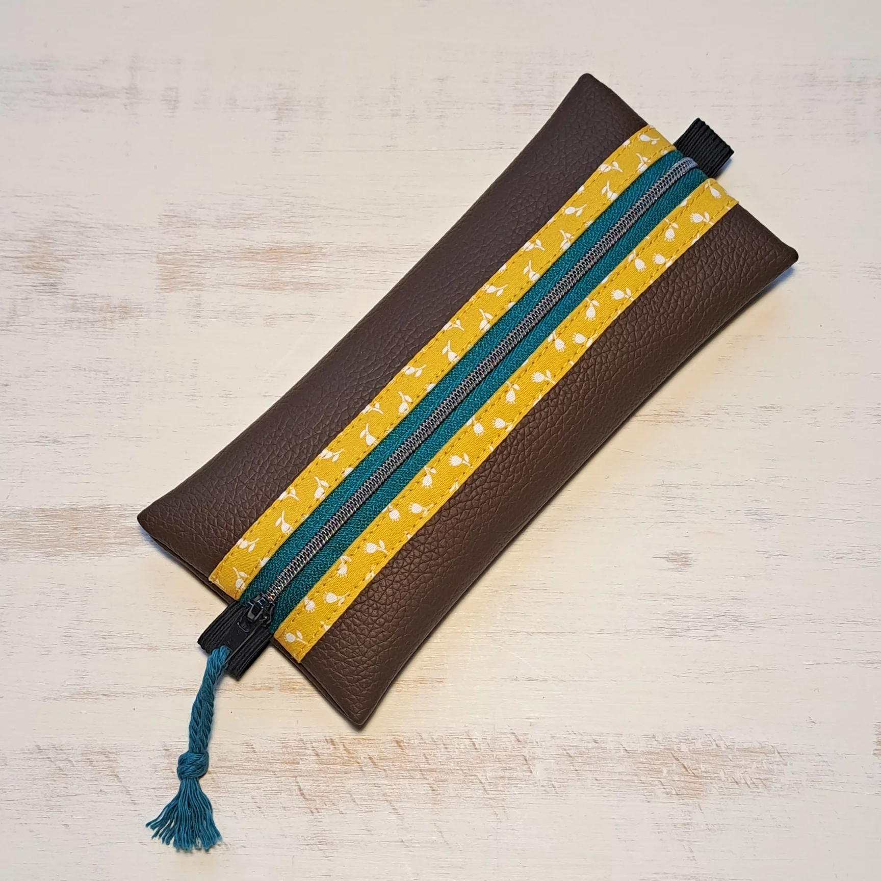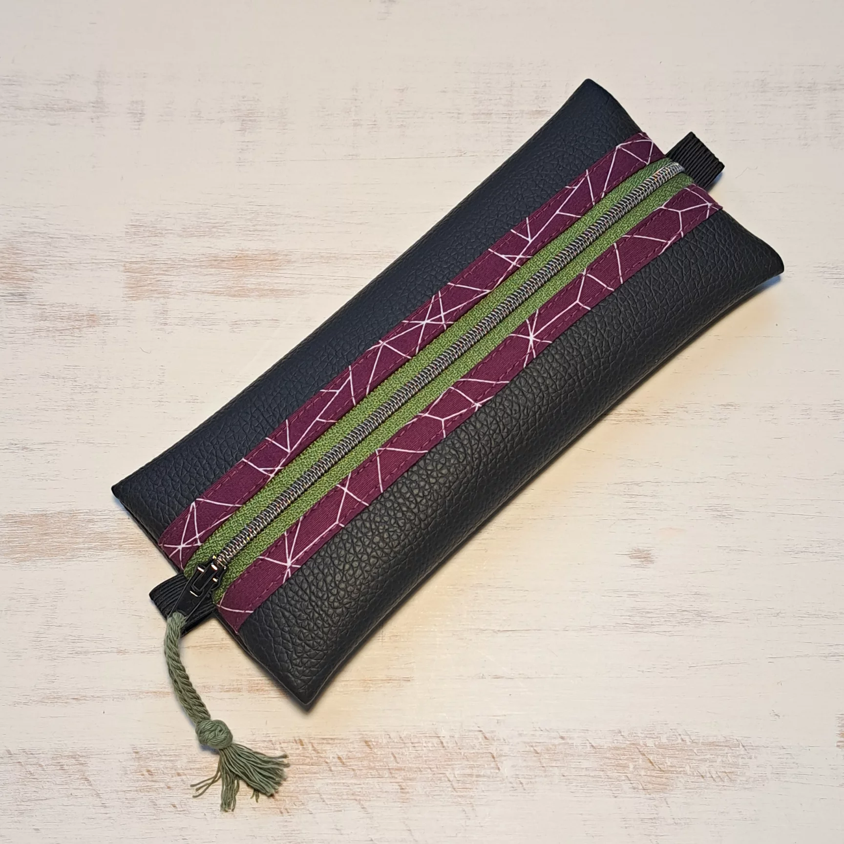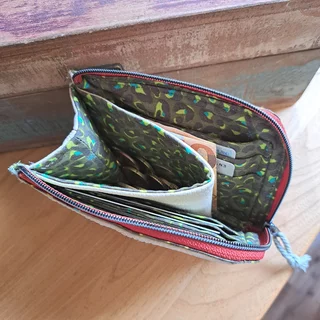Diese Mäppchen und Täschchen aus Kunstleder sind durch die Kombination aus gemusterter Innenstoffborte und farbigem Reißverschluss ein echter Hingucker...